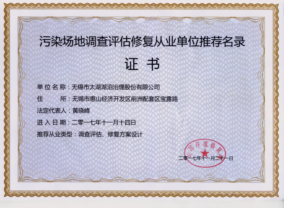 獲取《污染場地調(diào)查評估修復(fù)從業(yè)單位推薦名錄》證書